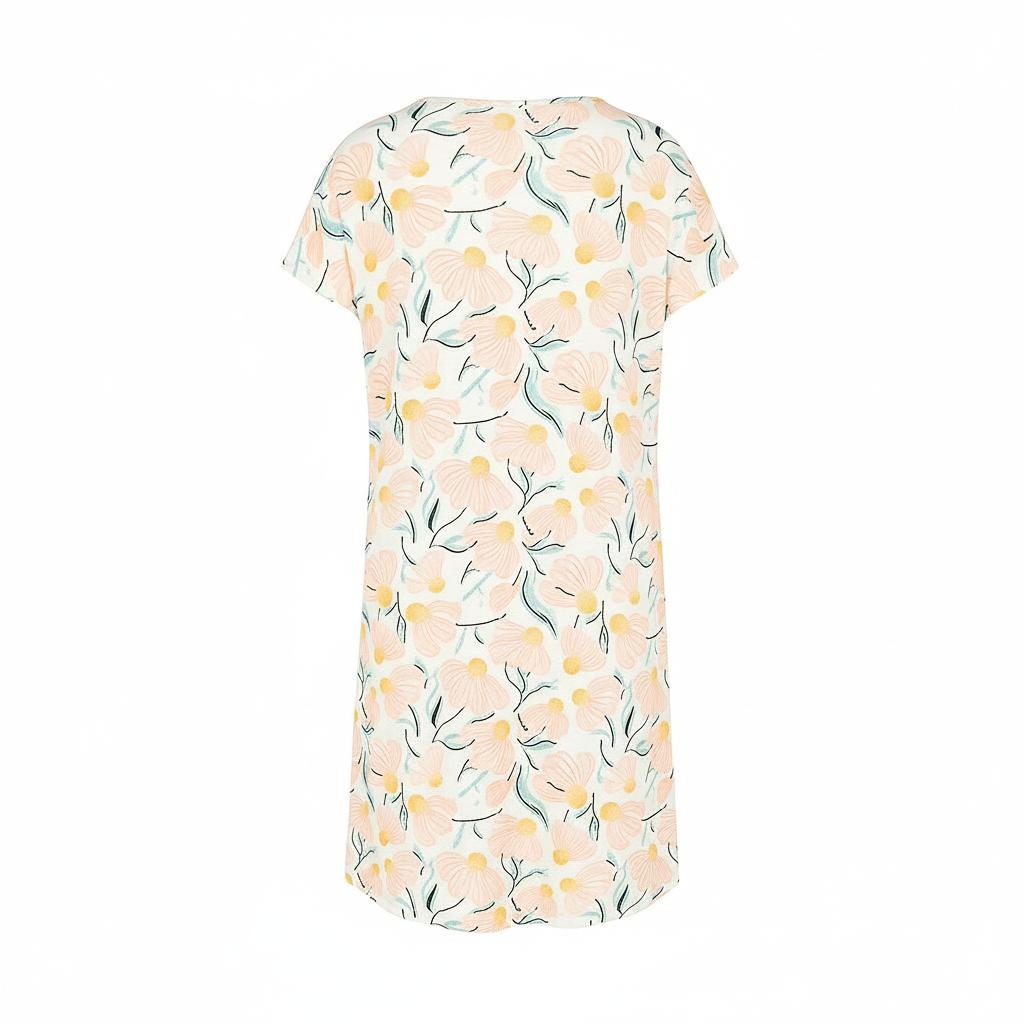 Dieses Charlie Choe Damen-Pyjama-Bigshirt in hellem Pfirsich sorgt mit seinem verspielten Blumenprint für eine fröhliche Sommerstimmung. Das Nachthemd hat kurze Ärmel und eine lockere, bequeme Passform, die sich in warmen Nächten herrlich luftig anfühlt. Dank der weichen Mischung aus 50 % Baumwolle und 50 % Modal fühlt sich der Stoff geschmeidig und atmungsaktiv an und fällt angenehm um den Körper. Dieses hellorange-rosa Charlie Choe Bigshirt ist perfekt zum sorglosen Entspannen, egal ob beim Ausschlafen, Loungen oder einem entspannten Abend zu Hause.