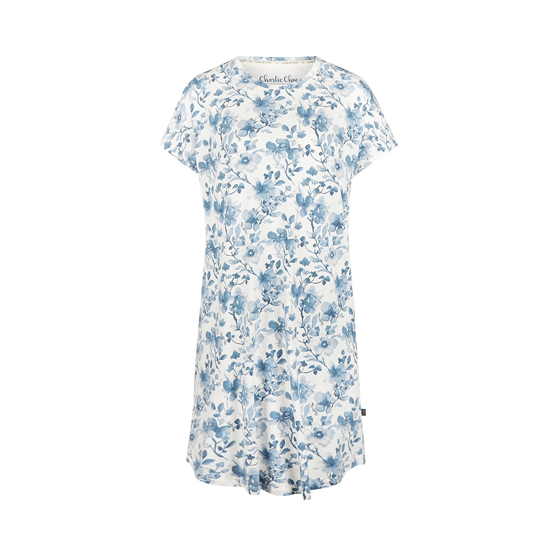 Charlie Choe Damen Pyjama Bigshirt Weiß Blaue Blumen
