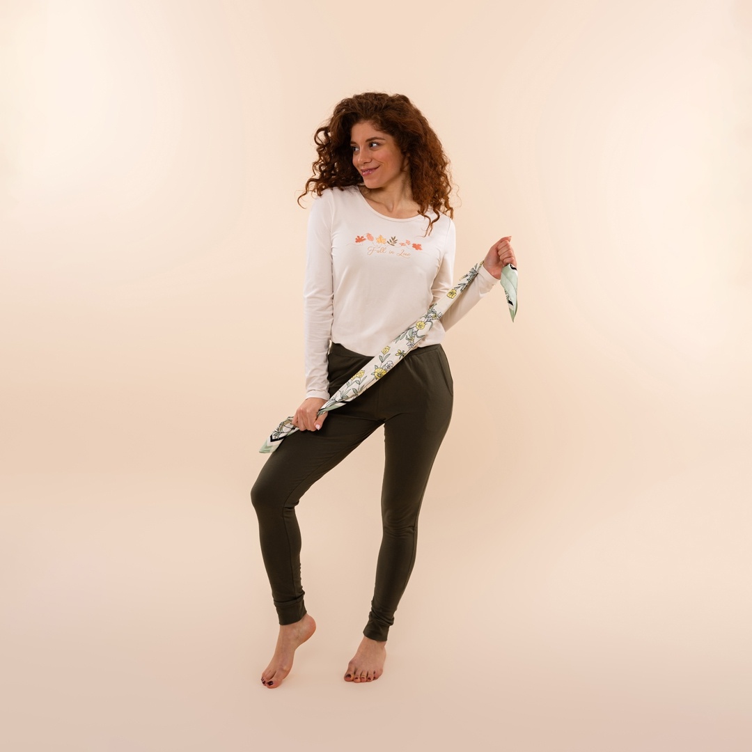 These fitted Charlie Choe pyjama trousers in stylish dark green are a perfect blend of comfort and simplicity. Thanks to the soft cotton blend (95% cotton, 5% elastane), the leggings feel wonderful against the skin and offer plenty of freedom of movement. The Charlie Choe women's leggings with pockets are ideal for pairing with a nightdress or long-sleeved top for a relaxing evening on the sofa or a peaceful night's sleep.