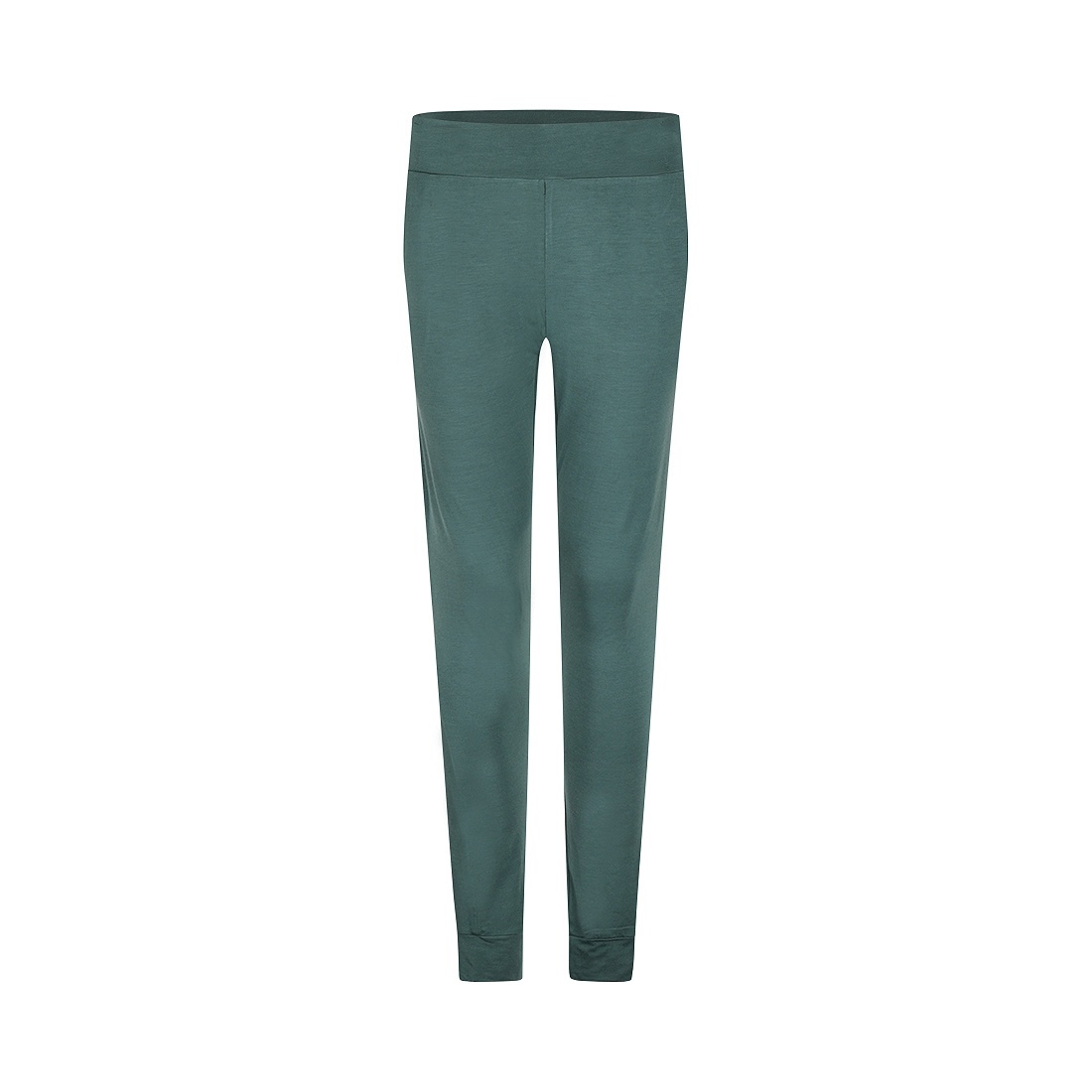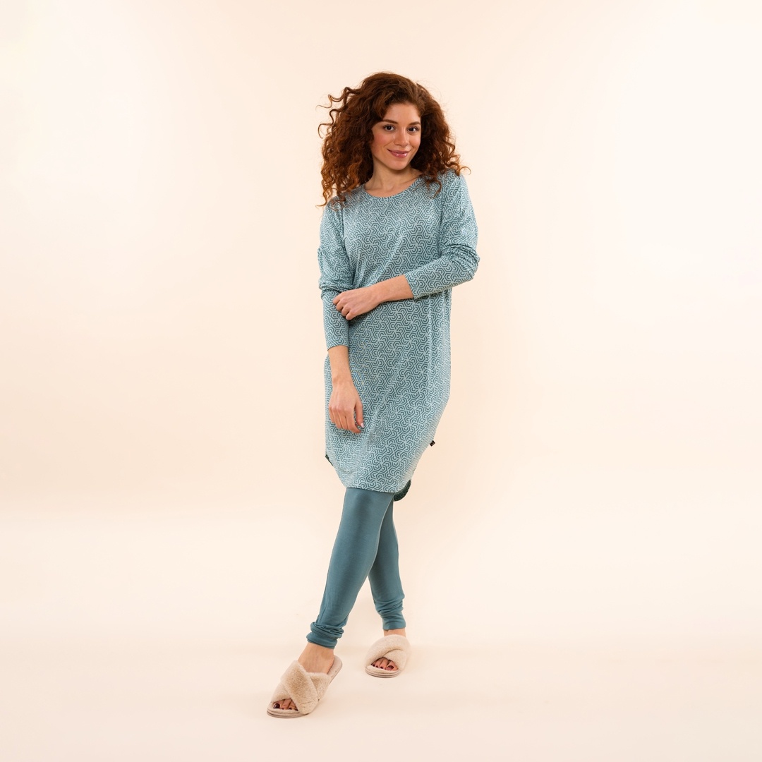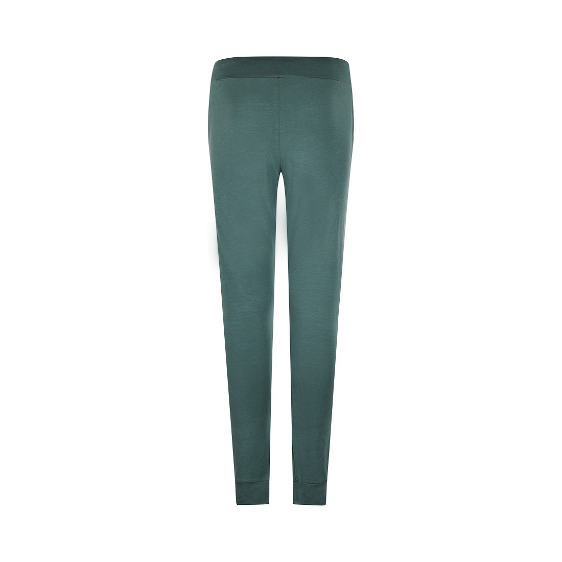 Deze Charlie Choe pyjamabroek in een stijlvolle groenblauwe tint heeft de comfortabele fit van een legging en de luxe feel van modal. De zachte, soepele stof (95% modal, 5% elastaan) voelt heerlijk aan op de huid en beweegt moeiteloos met je mee. Dankzij de elastische tailleband en aansluitende pasvorm is deze dames legging met zakken perfect voor ontspannen avonden of rustige ochtenden met een kop koffie. Je combineert hem met je favoriete Charlie Choe nachthemd of longsleeve.