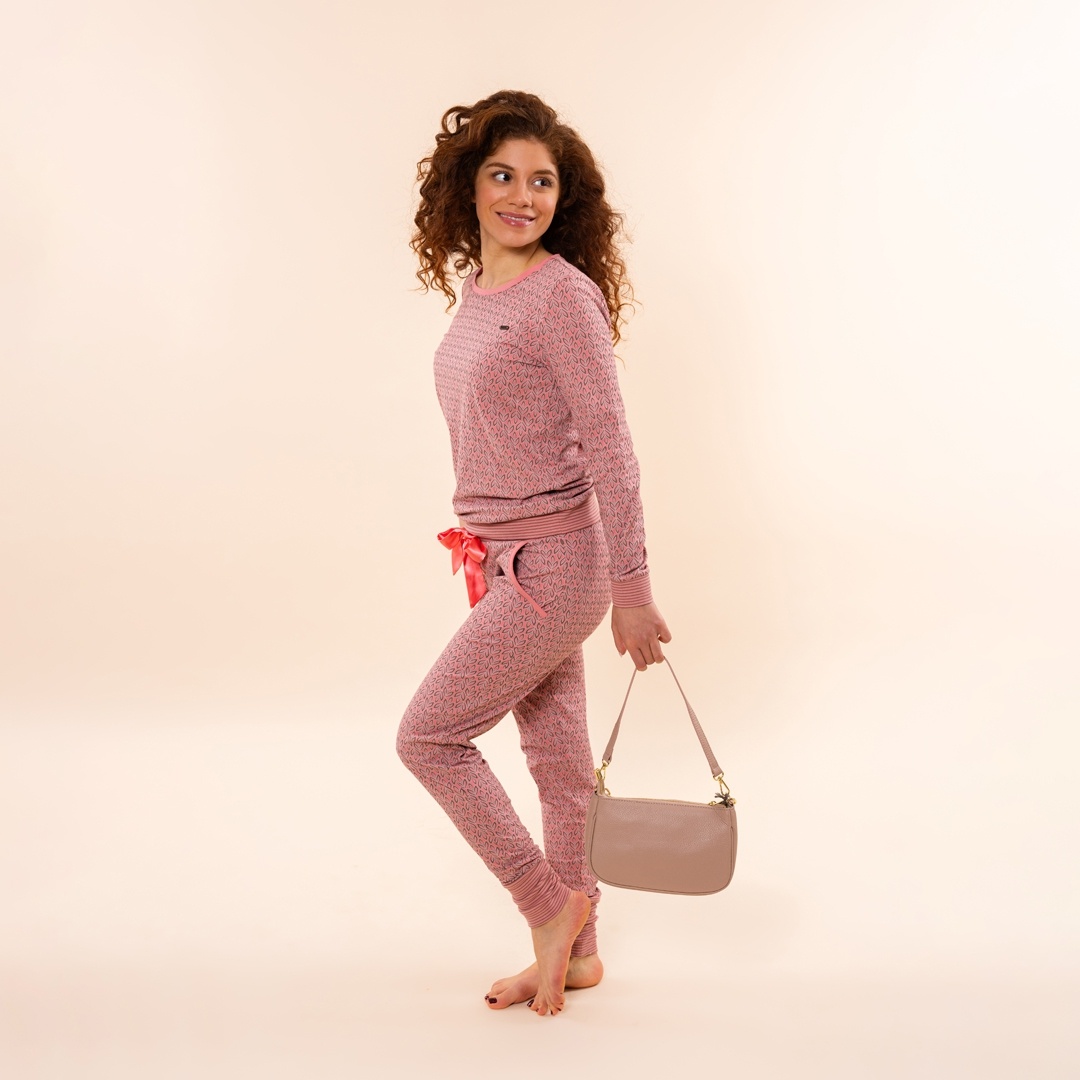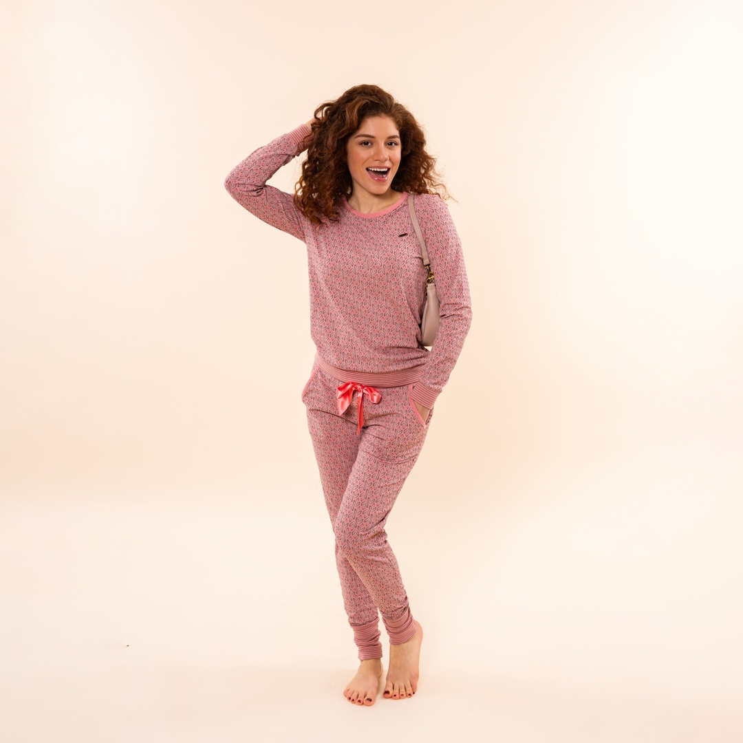 Deze roze dames Charlie Choe pullover is perfect voor wie houdt van subtiele prints en ultiem comfort. Het fijne all-over motief geeft het pyjamashirt een speelse twist, terwijl de gestreepte boorden en ronde hals zorgen voor een mooie afwerking. Gemaakt van zachte stretchkatoen (95% katoen, 5% elastaan), ideaal om in te relaxen op frisse ochtenden of knusse avonden thuis. Twinnen met je mini-me? Deze pyjama’s zijn er voor dames en meisjes.